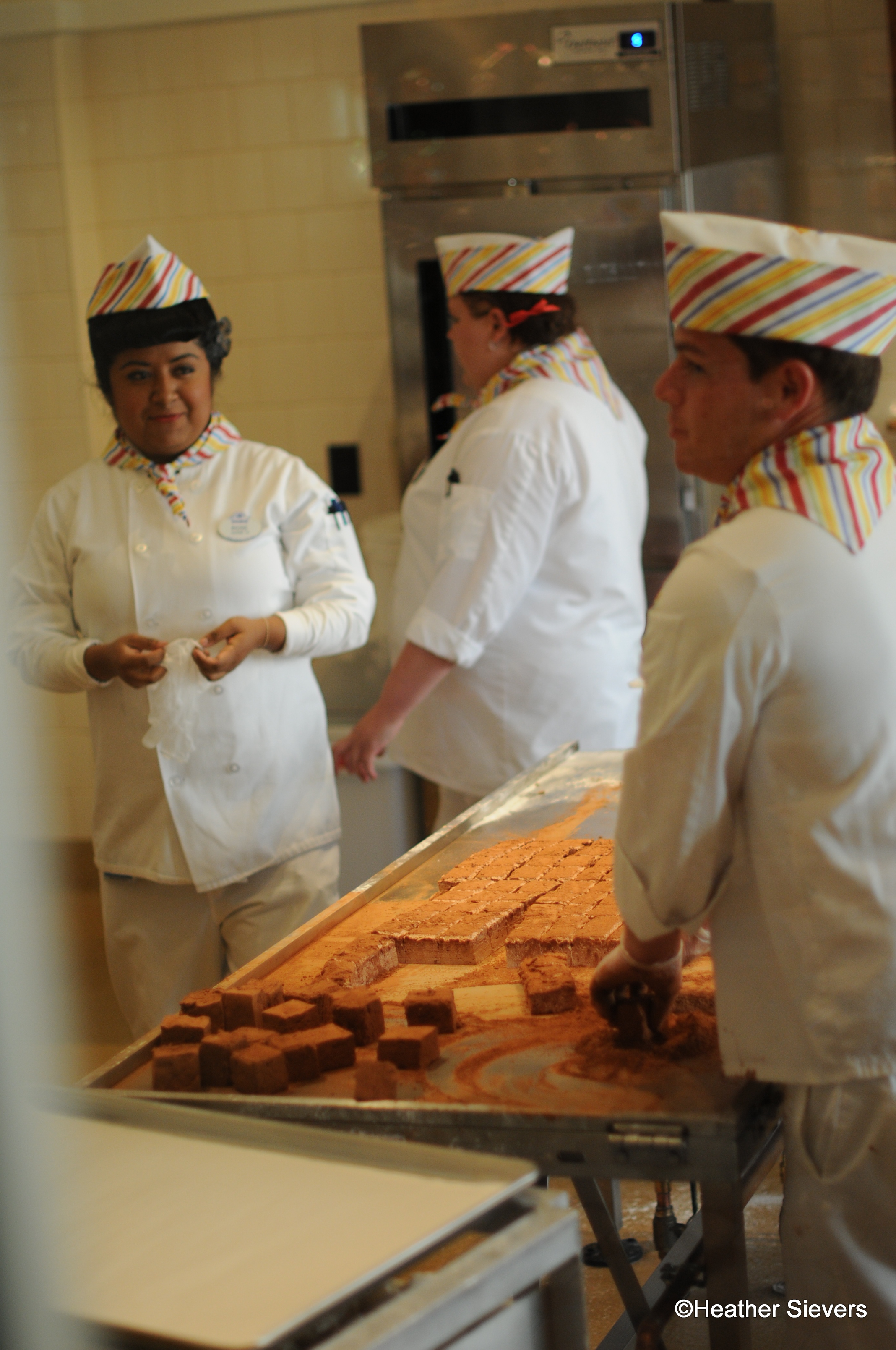 I love watching the candy makers in action and happened to get some pics of them making Banana Split Marshmallows!