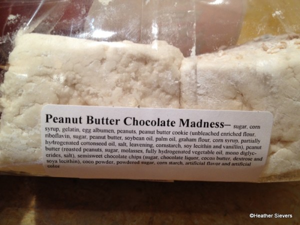 Other ingredients include peanuts, peanut butter cookie crumbles, and chocolate chips. Yum.
