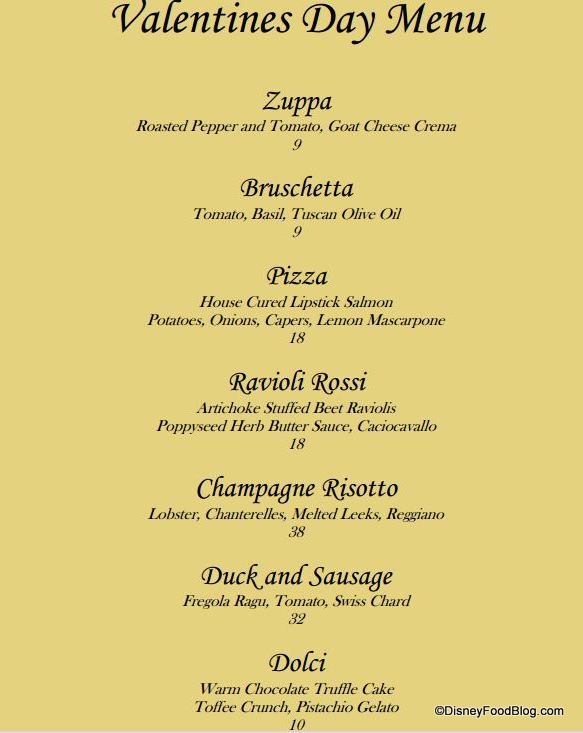 If you’re in town and don’t want to battle Disney crowds for Valentine’s Day, take advantage of this incredible menu. They’ll actually be serving the special menu February 14, 15, and 16.