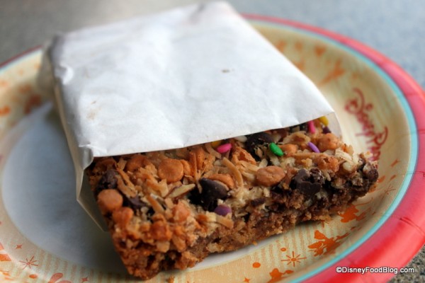 OK, here we go! To get the Magic Cookie Bar, you’ll need to head to Roaring Fork in Disney’s Wilderness Lodge. If you’re not staying at that hotel, you probably wouldn’t normally make the trek. But we’re telling you now — this cookie is WORTH IT.