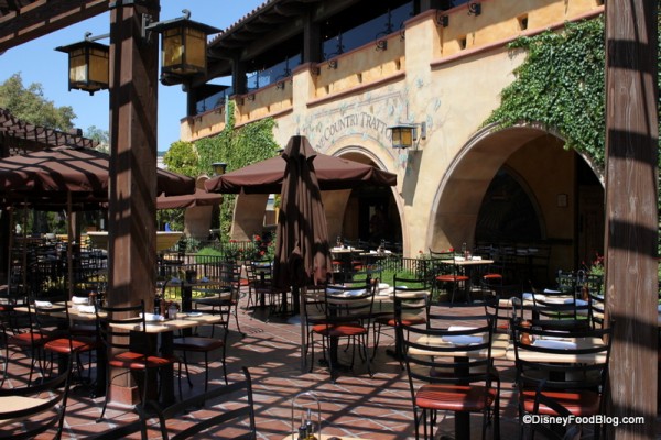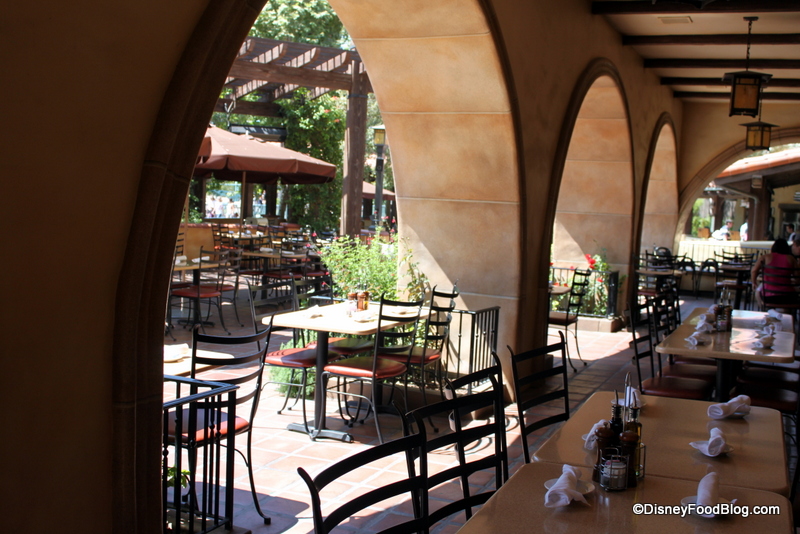 I have always been impressed with the quality of the food (salad and veggies are fresh and crisp, pasta is not overcooked, and the flavors are balanced with the seasoning just right), especially for a theme park restaurant. The lush plantings and mediterranean architecture really do make the terrace feel like a cafe overlooking the vineyards in Napa Valley.