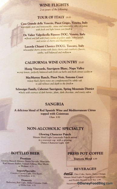 It may not be a destination for us every time we are in Disneyland, but Wine Country Trattoria is a good solid choice for a relaxing meal away from the chaos that can be a park day. I suggest you give it a try.
