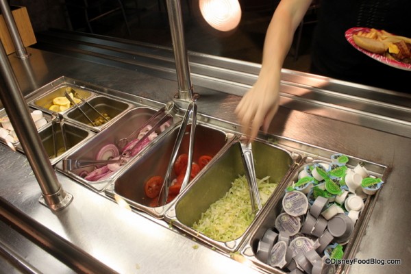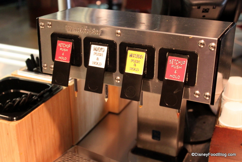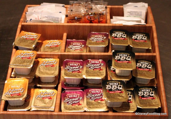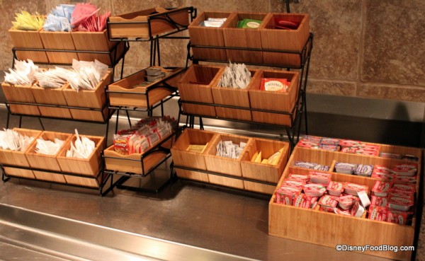 Beyond the beverage station, you’ll find plenty of condiments and fixings to dress up your food items.