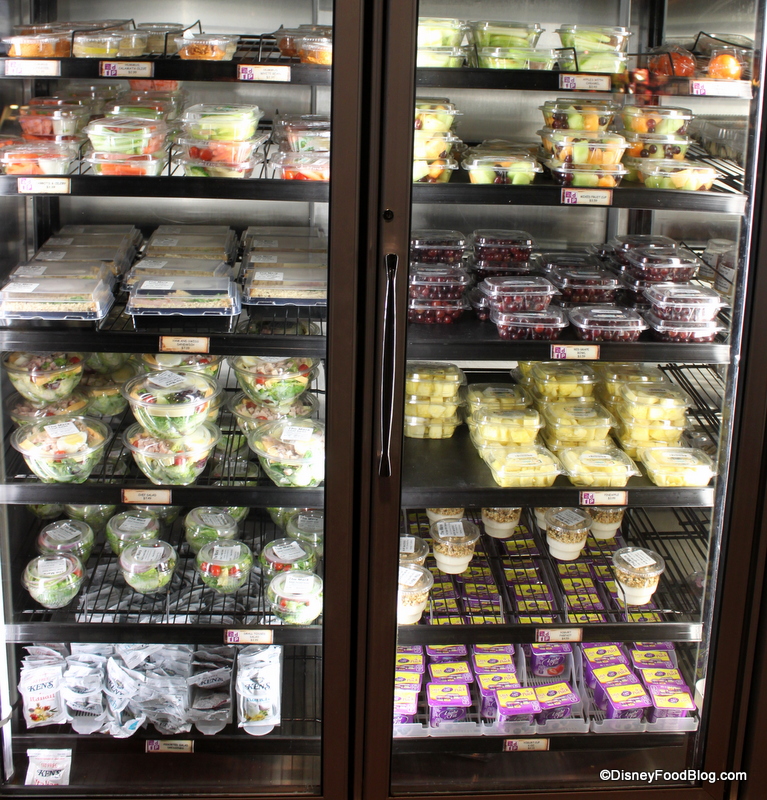 In the refrigerated grab and go area, you’ll find a large selection of fresh salads, sandwiches, and ready-to-eat fruit and breakfast items.