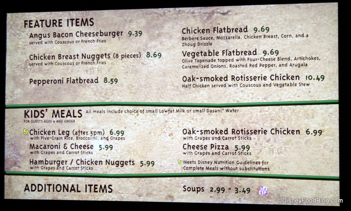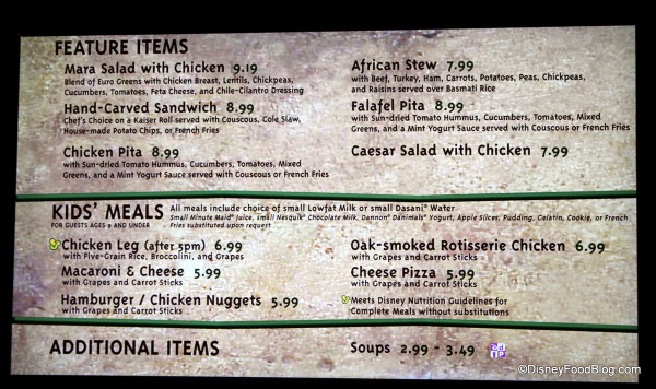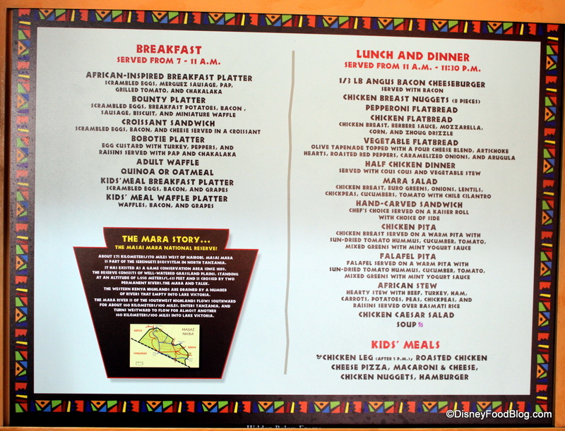 I just got back from a 10 night stay at AKL Jambo House and I was seriously impressed by the food offerings at the Mara. I had the Chicken pita with couscous on a few occasions, the hand carved turkey sandwich, and the Oak smoked half chicken and it was all delicious. Other family members tried the flatbreads, burger, and salads and everyone was impressed with the freshness and taste for a quick service location. Also, Boma impressed as well and jumped to the top of the dinner buffet list for me!