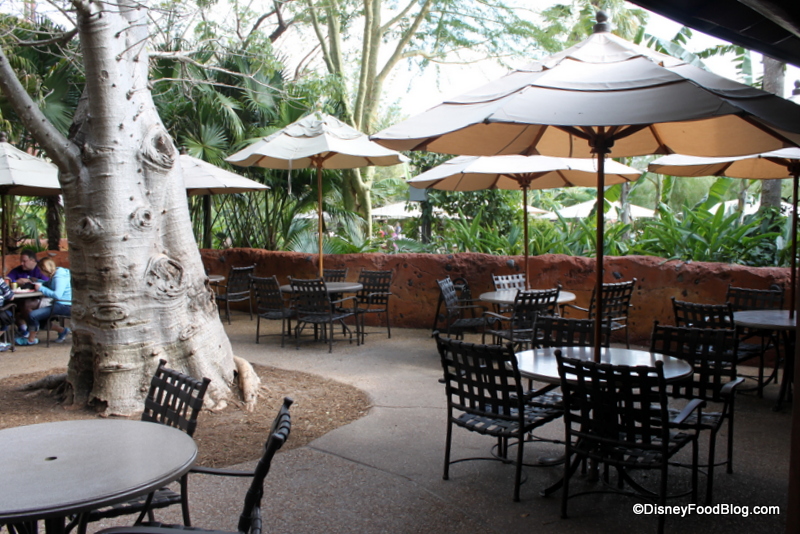 I ate at Mara a few years ago while exploring AK Lodge. I grabbed a flatbread pizza, cupcake & drink and went to sit on the patio. I was traveling alone and had to run back inside for something and came back out to several birds hopping around the table and beak imprints in the icing on my cupcake! Luckily the cast member let me swap out my cupcake for one without beak marks. This was also the same visit where I saw two zebras having a “good time” out in the savanna area! But the flatbread pizza was good as was the replacement cupcake with lots of white frosting. 😛