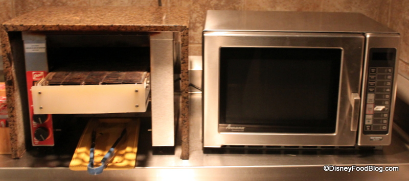 And there is also a toaster as well as a microwave for toasting breads, or for heating up baby foods, leftovers, or other items.