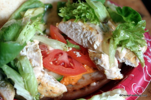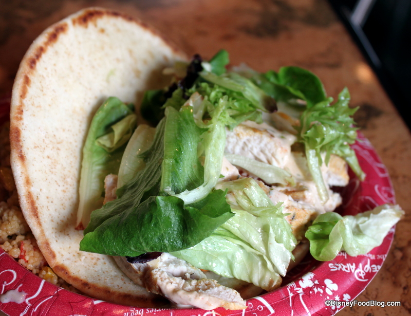 The Chicken Pita was touted to me as a guest favorite by Mara cast members. It looks deceptively simple here, but there are some really nice flavors hidden beneath the fresh, crisp lettuce.
