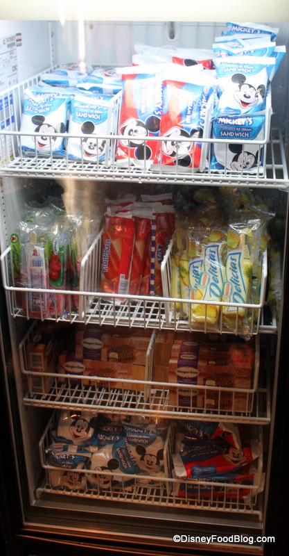 And you can also satisfy your craving for ice cream treats here as well. The wide selection includes iconic favorites like the Mickey Ice Cream Bar, the Mickey Ice Cream Sandwich, and one of our other favorites, the Nestle Delicias Pineapple Bar.