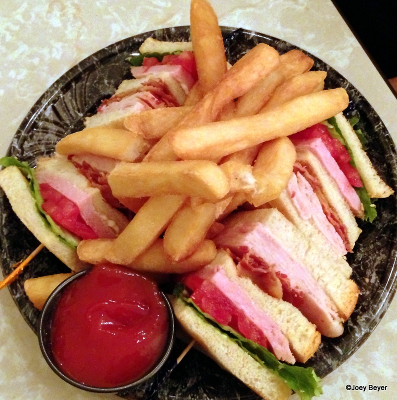 My dining companion went with the Plaza Club sandwich. This is not your run of the mill deli meat club sandwich. The Plaza Club comes with thick pieces of ham and turkey breast like you expect at Thanksgiving or Christmas.