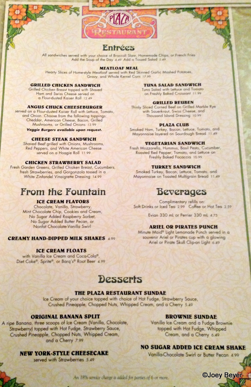 My BDFF (Best Disney Friend Forever) always eats here just before her family leaves the park on their last day of their vacation. She is the opposite of me when it comes to what she’ll eat. Essentially an anti-foodie. The simple fare here is very comforting to her. I agree. It’s hardly high cuisine, but everyone will find something they’ll eat at the Plaza.