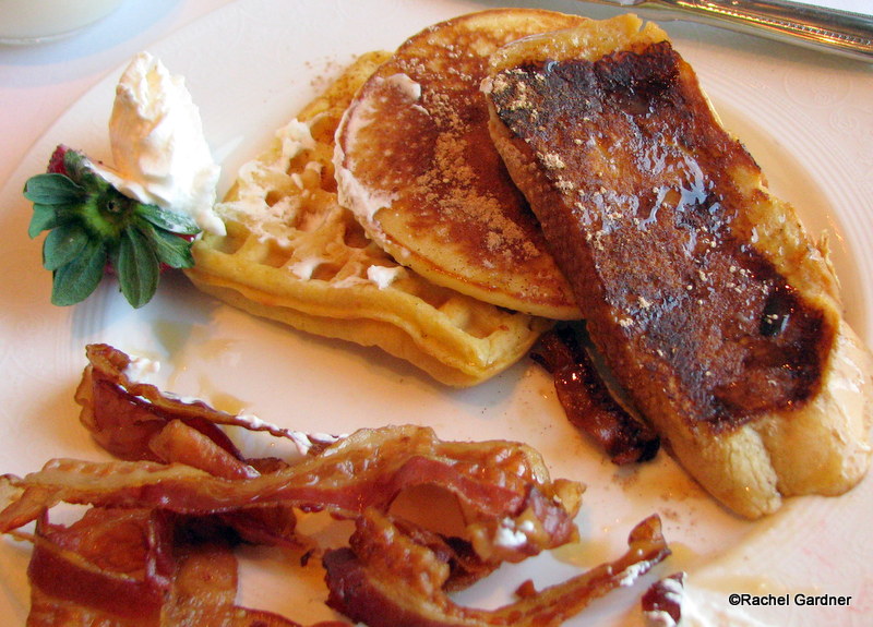 I also had the Disney Cruise Line Breakfast Trio – French toast, Belgian waffle, and buttermilk pancakes. The French toast was certainly the best! Plenty of tasty cinnamon on a pretty thick piece of toast, which I prefer to thinner slices.
