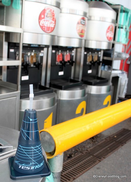 This souvenir cup emblazoned with the Test Track logo is, I’m pretty sure, the same type of cup that Cozy Cone Motel guests receive in Disney California Adventure.