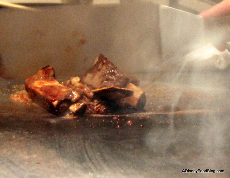 The first order of business was preparation of the grilled appetizers. Most of the starters are prepared in the kitchen, but we chose the Wafu Ribs, which were prepared on the flat top.