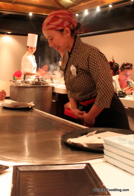 Soon after we were seated, our server greeted us. Since our food would be prepared before us by a Chef, her primary role would be to take our drink and food orders and take care of us throughout the meal.