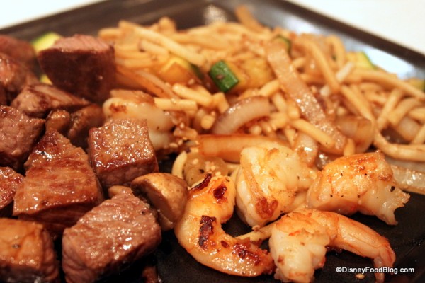 While this was very good, I could have used a bit more seasoning on the steak and chicken. I remember my last Teppan Edo meal being some of the best steak I’d ever had in Disney World; and while this didn’t fall flat, it wasn’t the full flavored meal I’d remembered. I noted that this time around, the steak in the steak and chicken option was not filet. If you order filet, you’ll pay more, but it might be worth it. 🙂
