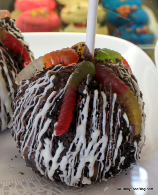 We’ve spotted a giant gourmet caramel apple featuring Worms & Dirt decor at all of the candy shops around the parks! This one will set you back over $12, though, so be sure it’s right for you before buying! 🙂