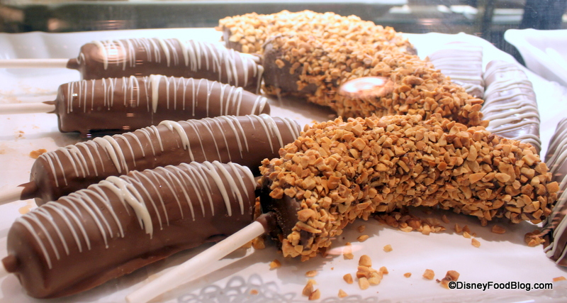 So, we’ve all seen (and probably eaten) those frozen chocolate-covered nanners that you can get at the Disney ice cream carts, right? But have you ever seen an unfrozen version? I hadn’t! Until I scoped out the snack cases at Big Top Treats in the Magic Kingdom last week!