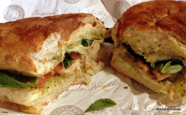 Please welcome back Guest Author Julie B. as we head with her to the Earl of Sandwich in Downtown Disney Orlando. Today, she samples the Chicken Pesto Pomodoro Sandwich! Let’s check it out…