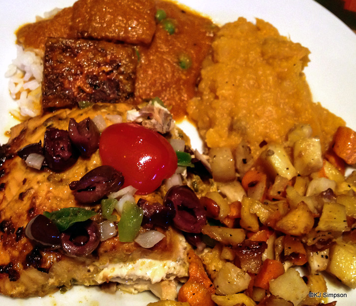 First up was the Chermoula Salmon. Chermoula is a Moroccan marinade, made with a variety of spices and flavorings and often used to flavor meat and fish. This particular chermoula contained olives. As someone who usually limits her olive consumption to applications involving martinis, I was a bit worried when I saw the olives atop the salmon.