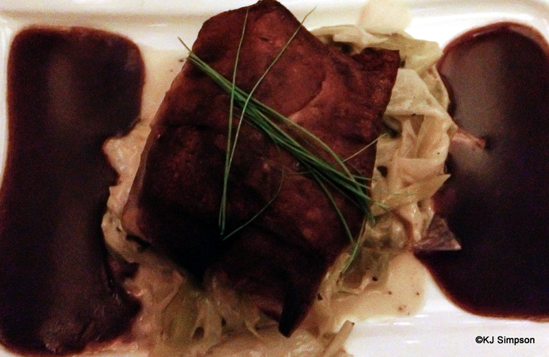 The taste, however, was delicious. The potato provided a satisfying texture to accompany the fish. It was served atop leek fondue, which was creamy, rich and buttery, with a large portion of melt-in-your-mouth leeks. These were surrounded by a rich wine demi glace. It’s easy to understand why this is one of the signature dishes at Flying Fish.