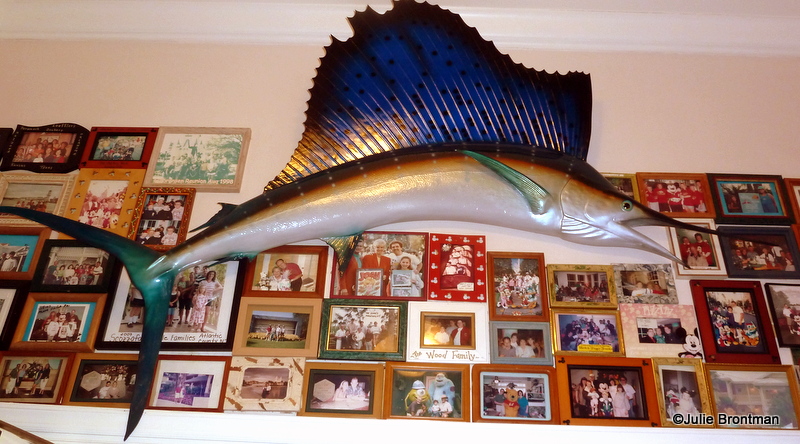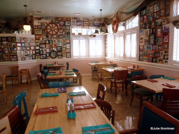 When you enter the restaurant, you’ll see walls adorned with tackle and boating items, but also covered with family photos of Disney Vacation Club (DVC) members.