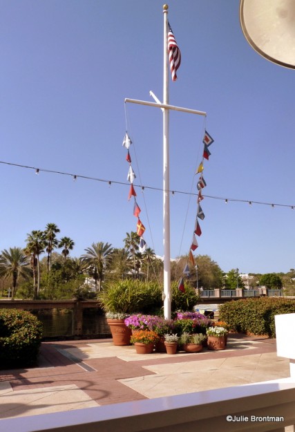 We dined on a flawless weather day, so we opted for a table on the patio. Our table had a perfect view of the flag pole, water, and lobby walkway area.
