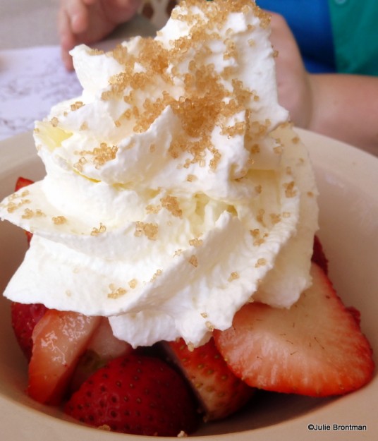 We started with a breakfast appetizer of strawberries and cream. It was a lovely bowl of cut strawberries with a mound of fluffy whipped cream, all sprinkled with some Sugar in the Raw. I really enjoyed this light start to the meal. It wasn’t overly sweet but gave us enough sugar to balance the savory entrees.