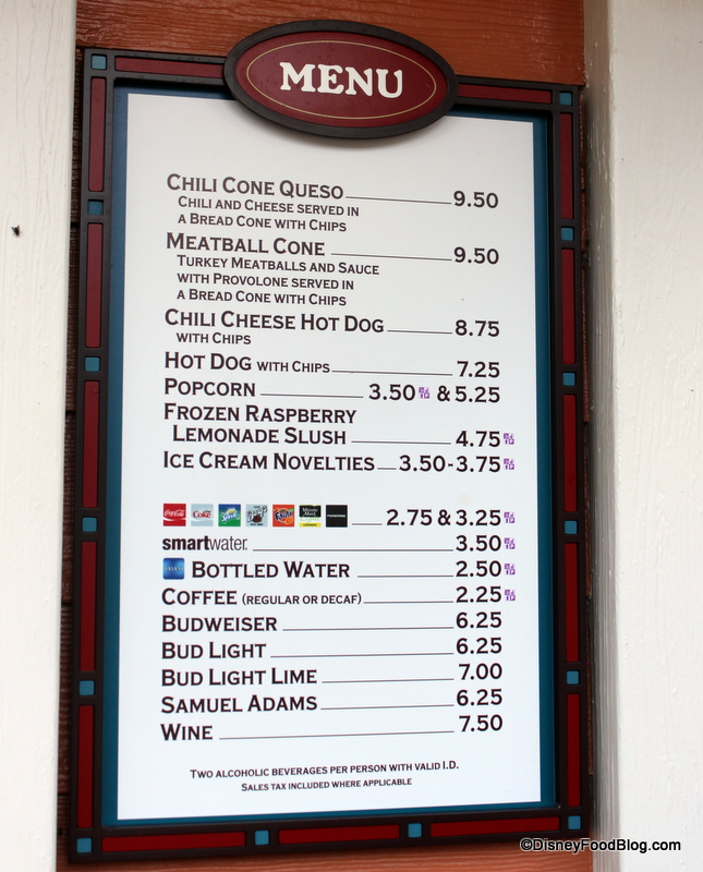 Two new cones replace a couple of the more upscale “gourmet” hot dog selections that were previously available here. If you’re a big fan of the Philly Cheesesteak Dog or the Barbecued Pork and Coleslaw Dog, you’ll have to enjoy them elsewhere. (At our last check, the Philly Cheesesteak Dog could still be found at Magic Kingdom’s Lunching Pad, while you can head to Casey’s Corner for the Barbecue Pork Coleslaw Dog.)