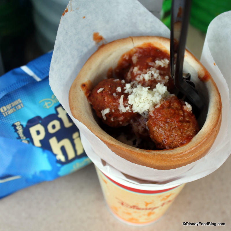 Now, if they would just build a little themeing around it so that it makes sense to eat your meatballs out of a bread cone… 😉 Still, I think they’re fun, and it’s pretty cool that Disney fans who can’t make it to Disneyland will be able to experience them too.