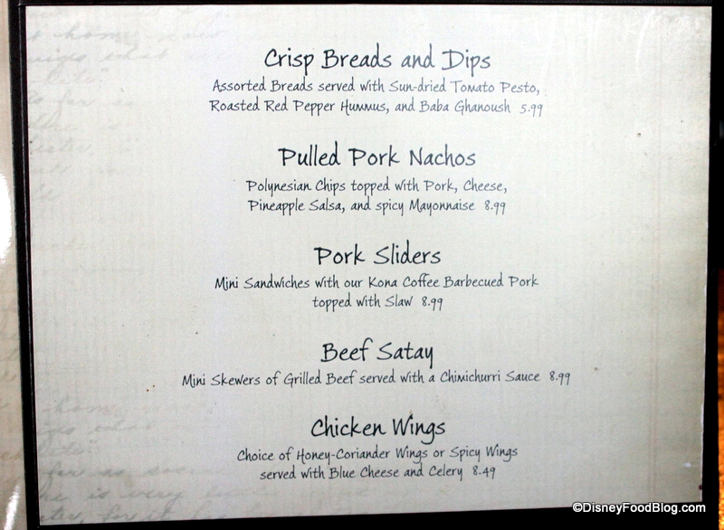 Located at Disney’s Polynesian Resort, this is one of my favorite spots in the entire resort to kick back, relax, and enjoy an adult beverage while awaiting my table at ‘Ohana. But what you might not know is that Tambu also serves up some tasty island-inspired pub grub as well.