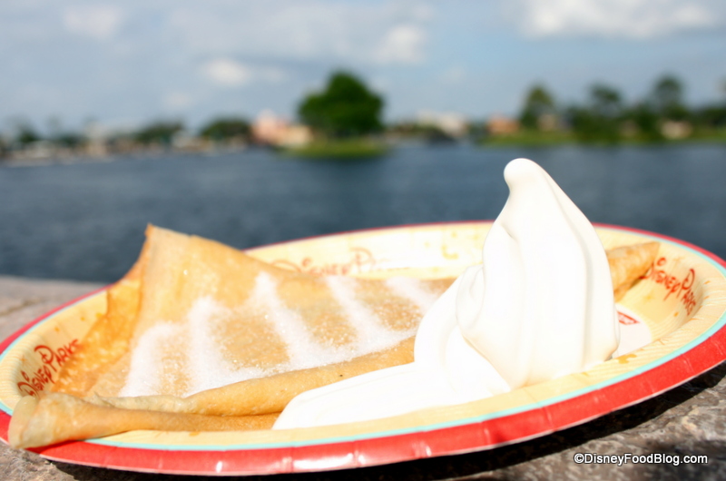 My boyfriend and I got these crepes last summer when we visited Disney World together for the first time. I loved how light and airy they were! Makes me wish I could go back and get some now…. yum….