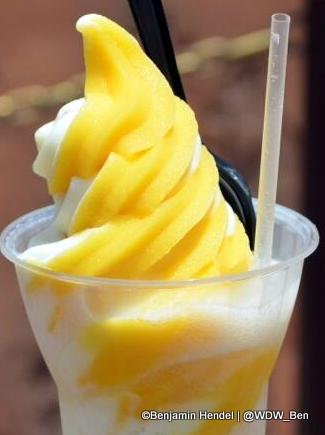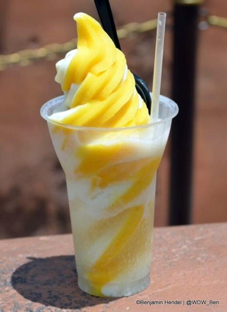 The Citrus Swirl can be purchased by itself at the Sunshine Tree Terrace, just behind Aladdin’s Flying Carpets and near the Tiki Room. If you hear Kronk or Jafar in a Sorceror’s of the Magic Kingdom portal, you’re heading in the right direction.