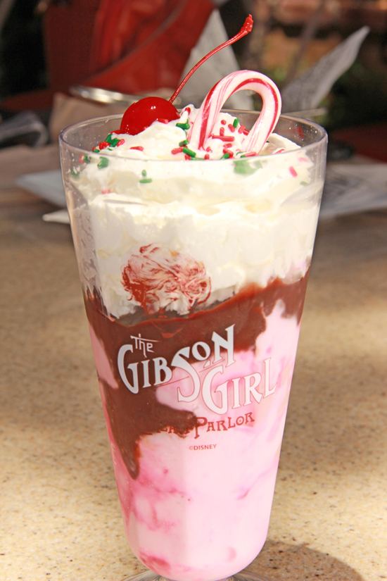 Over on the west coast, Disneylanders will get to sample a delicious Peppermint Hot Fudge Sundae at Gibson Girl on Main Street! Enjoy this goody filled with peppermint ice cream, hot fudge, and a peppermint candy cane.