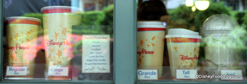 Inside the windows of the walk up space, there’s a display of cup sizes so that you can be sure to know exactly what you’re getting. If you look closely, you’ll also see a list of flavors that you can choose from to spice up your coffee.