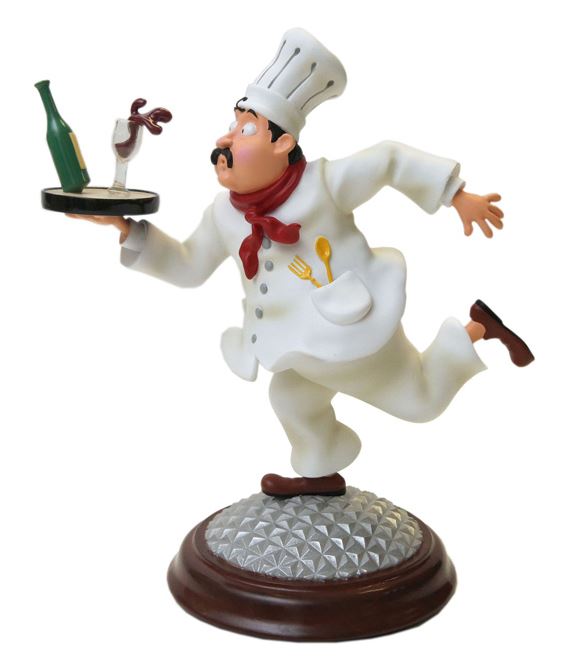 The chef is also the star of a new 7-inch bobble figurine, made extra awesome because he’s balancing on top of Spaceship Earth!