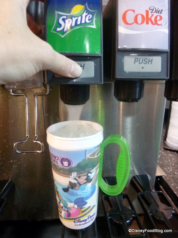 Me, too! I like to fill my cup with three quarters Pomegranate Lemonade and one quarter Sprite. This is my own personal recipe for my Disney Mocktail (you’re welcome 😉 ). Yes, you can still do that, right up until the “Fill Complete” message appears.