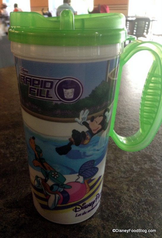 The text would seem to have answered that question. However, both the price signs and one of the Cast Members I spoke with indicated that Rapid Fill mugs can be used at “any resort self-service beverage location,” as long as they are used within the designated time frame.