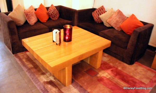Low, comfortable couches offer a nice contrast to traditional bar seating, and make for a cozy gathering place.