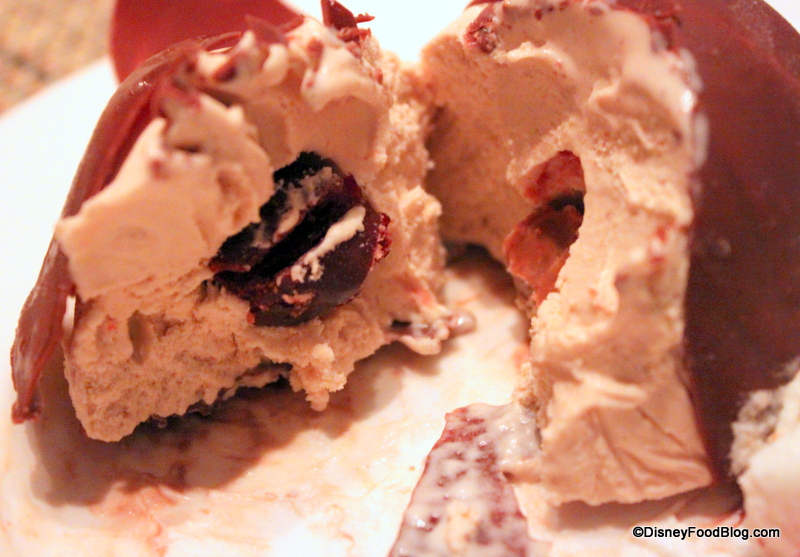 When we cut into the Tartufo, we found a macerated cherry! It was a nice complement to the creamy flavors.