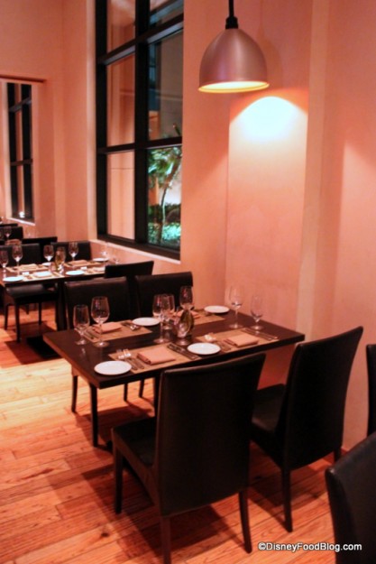 The vibe of Il Mulino is New York chic. Rather than feeling like you’re in a corner of Walt Disney World property, it seems like you’re a thousand miles away in a cityscape. Clean, modern lines in the bar and throughout the restaurant hint at the urban feel, while exposed beams and brick warm up the space.