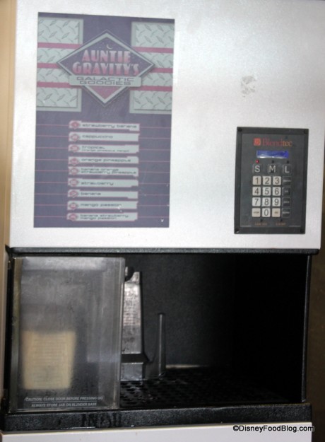 So if you’re searching for Auntie Gravity’s and coming from Tomorrowland, keep a look out for the ginormous “Ice Cream and Smoothies” sign that hangs overtop both doors leading into the shop.