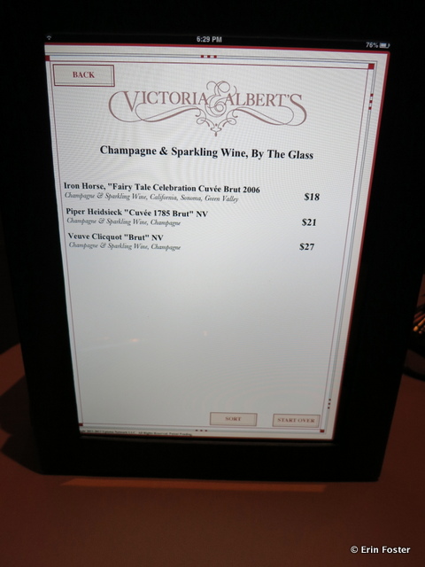 During our trip, my husband and I dined at our favorite restaurant on the planet — Victoria & Albert’s at the Grand Floridian. Maitre d’Hotel Israel Perez was excited to show us that the venue’s wine list had recently been transferred to an interactive iPad format.