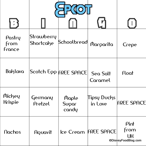 This is a great idea!! I plan on making a set of four of these bingo cards, specifically for the F&W festival at Epcot. There will be four of us going to the F&W festival for 5 days in November, so we’ll each receive a card per day to play with and switch cards after each day. Day 5 will be a free for all day allowing each of us to sample any and all the the World food booths so as to complete our passports. I did manage to sample every booth last year. I hoping for a repeat this fall. Great idea, A.J.