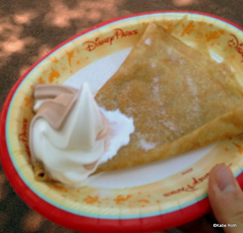 Another first for us – this was soooo good! The crepe was warm with lots of cinnamon and sugar on it. I was a little surprised to see the ice cream on the side; I was expecting hand-dipped scoops rolled in the crepe.