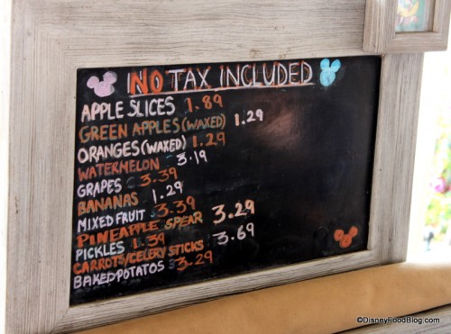 I love to reach for a piece of fresh fruit, especially on a hot Florida day, and especially for breakfast. And these days you’ll find some really appetizing (as opposed to a few years ago) fresh-cut and whole fruits in each park. (I usually find the best stuff in Disneyland, but Disney World’s selection has gotten better and better.)