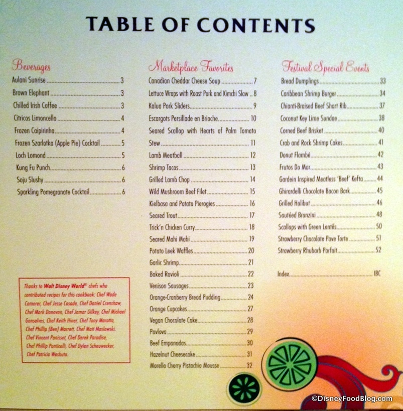 We couldn’t resist showing you a sneak peek of all the recipes this year’s book will include. Note that Disney has also included recipes from some of the festival’s special events again this year! Very cool.