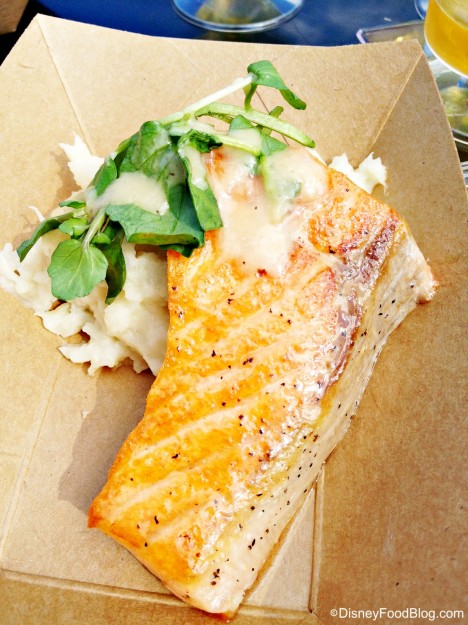 Salmon is always a popular option with festival goers, and the Seared Scottish Salmon with Cauliflower Puree, Watercress and Malt Vinaigrette is proving to be a great addition to this year’s lineup! In fact, it made our Best of the Fest List!