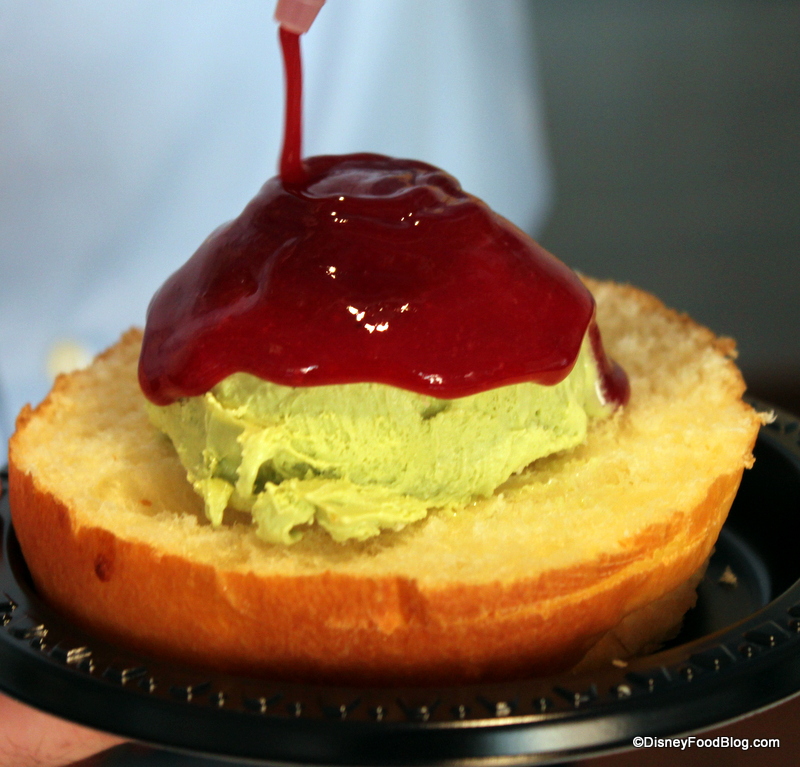 The CM will add a generous scoop of your chosen flavor to the brioche…