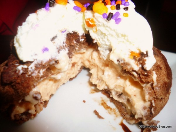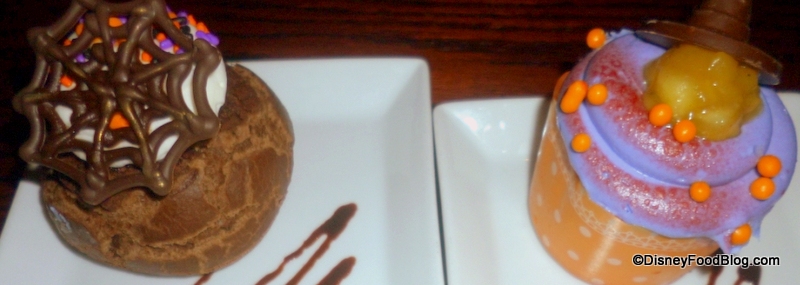 Umm… did I say, “select ONE?” Scratch that… we’re throwing that silly dessert rule straight out the Beast’s window because there are two Halloween-specific treats in that cart on Mickey’s Not-So-Scary Halloween Party nights: the Chocolate and Blood Orange Cream Puff and the Poisoned Caramel Apple Cupcake!